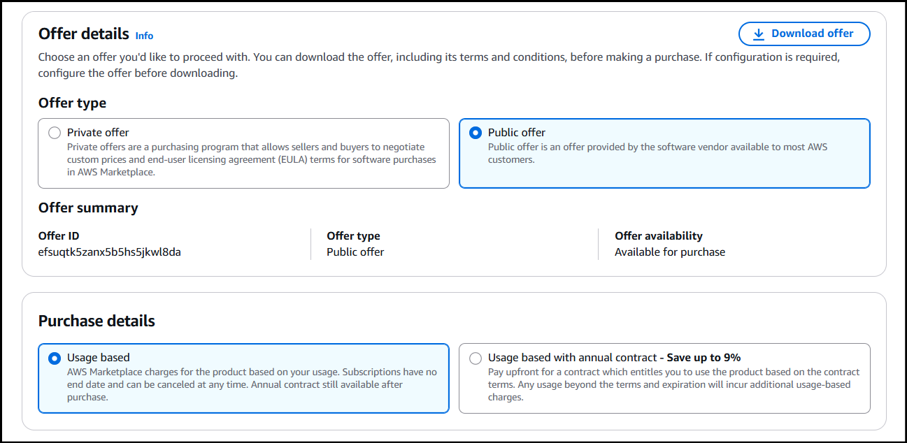 Edit the Offer details section and select an Offer type of Public offer.