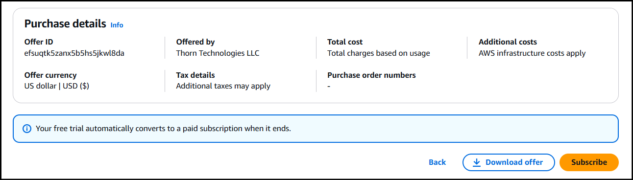 Afterwards, the Offer & Purchase details should look like this.