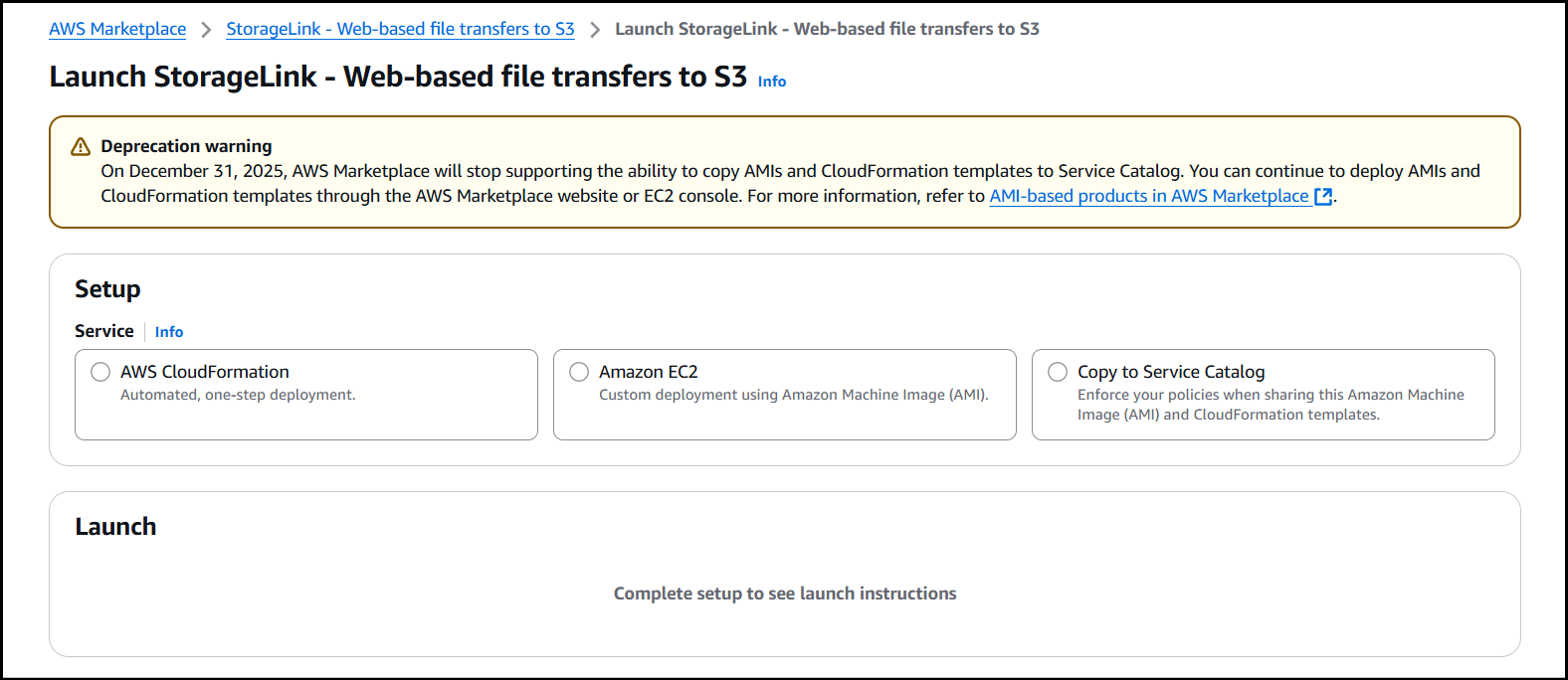 You first need to subscribe to the StorageLink listing. Doing so allows your AWS account to use the StorageLink AMI.