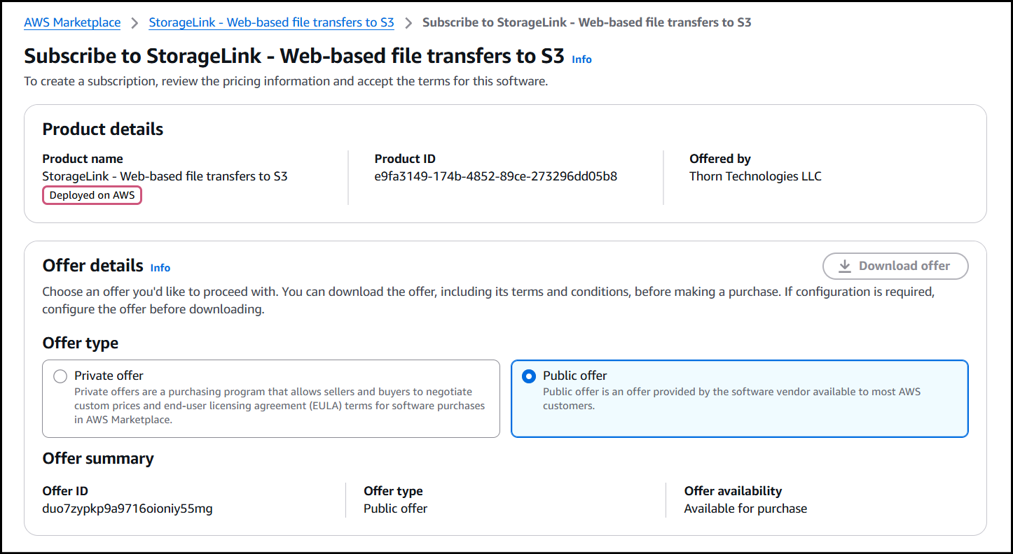 You first need to subscribe to the StorageLink product. Doing so allows your Azure account to provision the StorageLink VM offer.