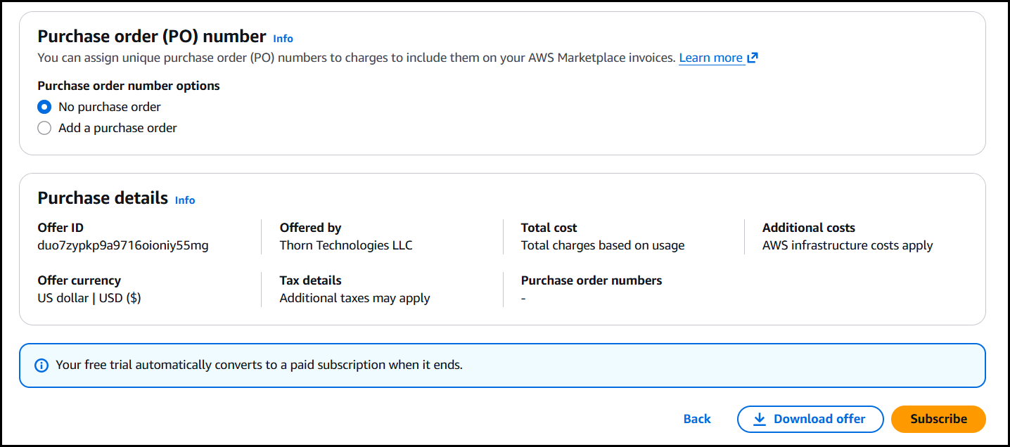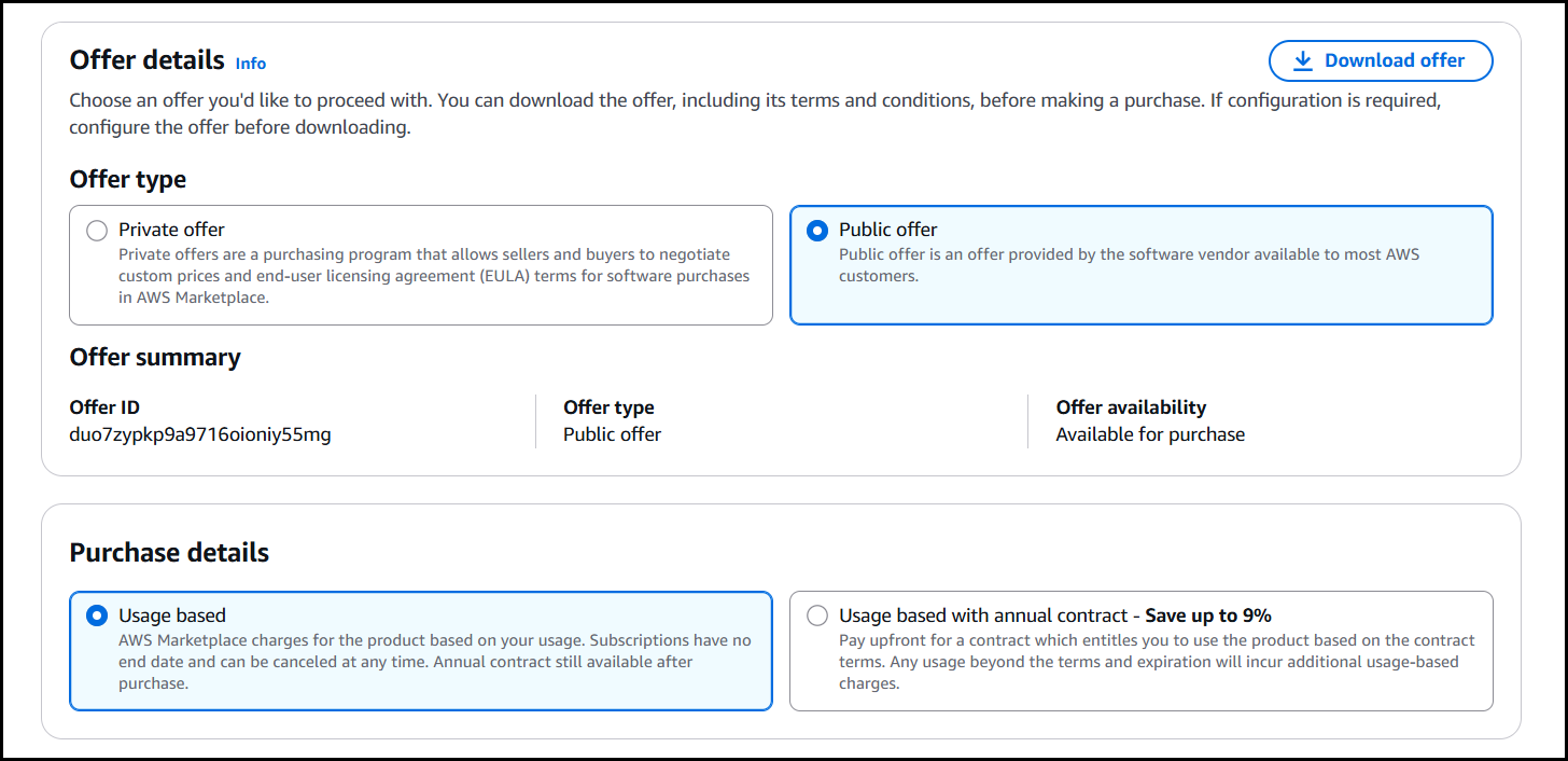Now that you've selected the correct details (Public offer/Usage based), scroll to the bottom of the page and click Subscribe.